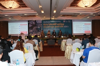 ภาพงานสัมมนาเพื่อเผยแพร่ข้อมูลของโครงการศึกษาพัฒนาเมืองกับระบบโครงสร้างพื้นฐานด้านคมนาคมขนส่ง “TOD คมนาคมสร้างเมือง เมืองสร้างสุข สุขสร้างได้” ครั้งที่ 3