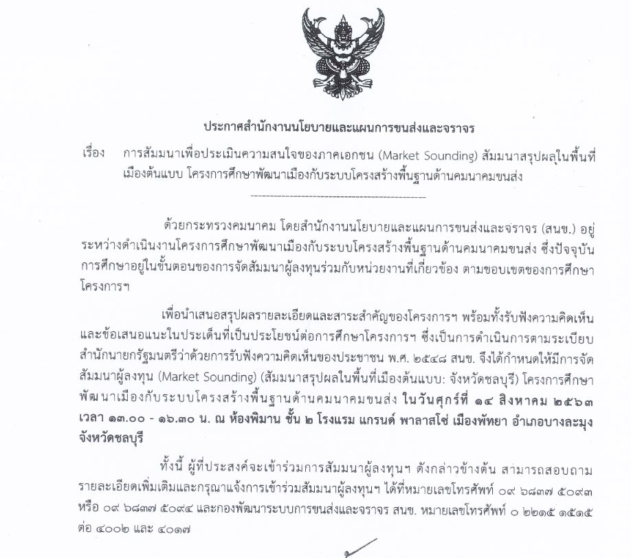 ประกาศ สนข. สัมมนาสรุปผลเมืองต้นแบบ-ชลบุรี (MKS-ช่วงบ่าย)